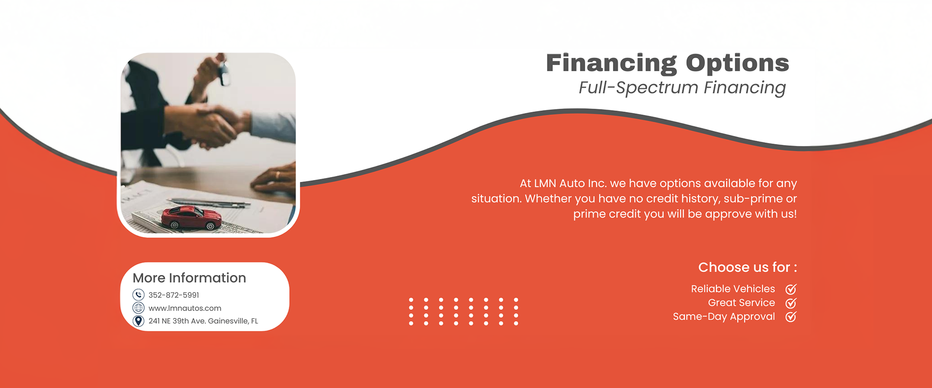 Let LMN Auto Inc. show you how easy it is to buy a quality used car in Gainesville. We believe fair prices, superior service, and treating customers right leads to satisfied repeat buyers.